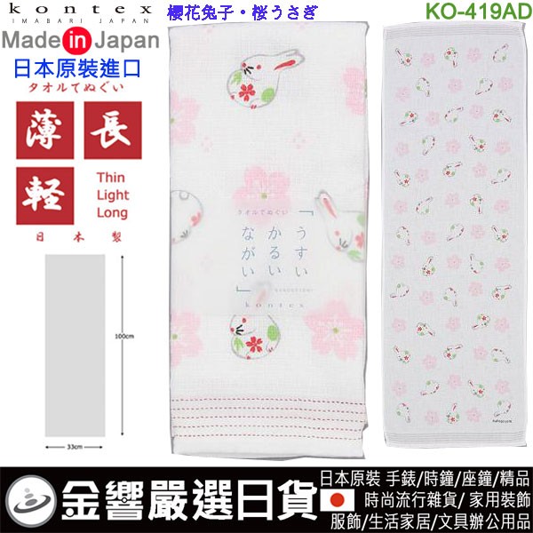 dot 【金響日貨】kontex KO-419AD 櫻花兔子(日本原裝):::日本製,今治毛巾,純棉毛巾,洗臉巾,洗澡巾,紗布巾,長毛巾,刷卡或3期