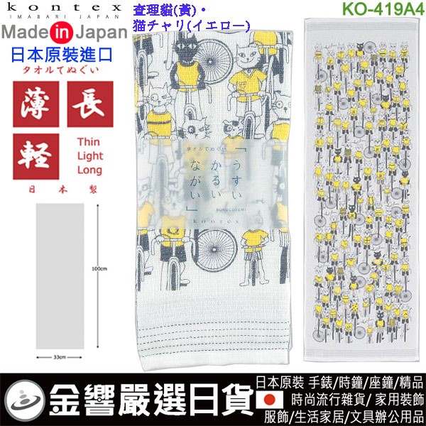 【金響日貨】kontex KO-419A4 查理貓(黃)(日本原裝):::日本製,今治毛巾,純棉毛巾,洗臉巾,洗澡巾,紗布巾,長毛巾,刷卡或3期