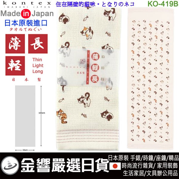 dot 【金響日貨】kontex KO-419B 隔壁的貓(日本原裝):::日本製,今治毛巾,純棉毛巾,洗臉巾,洗澡巾,紗布巾,長毛巾,刷卡或3期