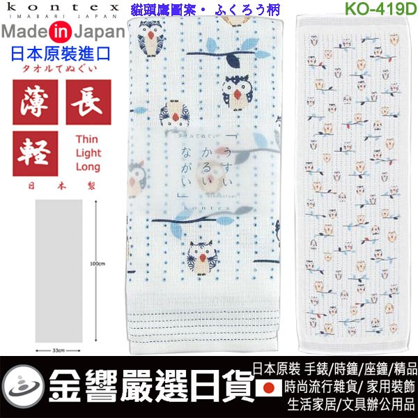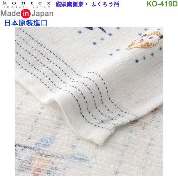 【金響日貨】kontex KO-419D 貓頭鷹圖案(日本原裝):::日本製,今治毛巾,純棉毛巾,洗臉巾,洗澡巾,紗布巾,長毛巾,刷卡或3期line