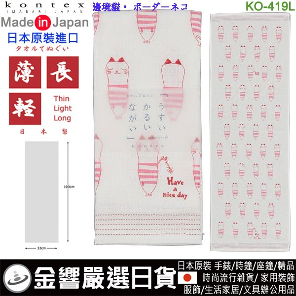 【金響日貨】kontex KO-419L 邊境貓(日本原裝):::日本製,今治毛巾,純棉毛巾,洗臉巾,洗澡巾,紗布巾,長毛巾,刷卡或3期
