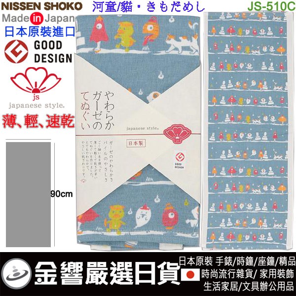 缺貨,nissen-shoko JS-510C 河童貓精靈(日本原裝):::日本製,純棉毛巾,洗臉巾,洗澡巾,紗布巾,長毛巾,GOOD DESIGN受賞,刷卡或3期