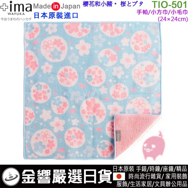 dot 【金響日貨】現貨,+ima TIO-501 櫻花和小豬(日本原裝):::日本製,今治毛巾,WAFUKA,和布華,愛媛縣,小毛巾手帕,小毛巾,小方巾,刷卡或3期,4543479112745