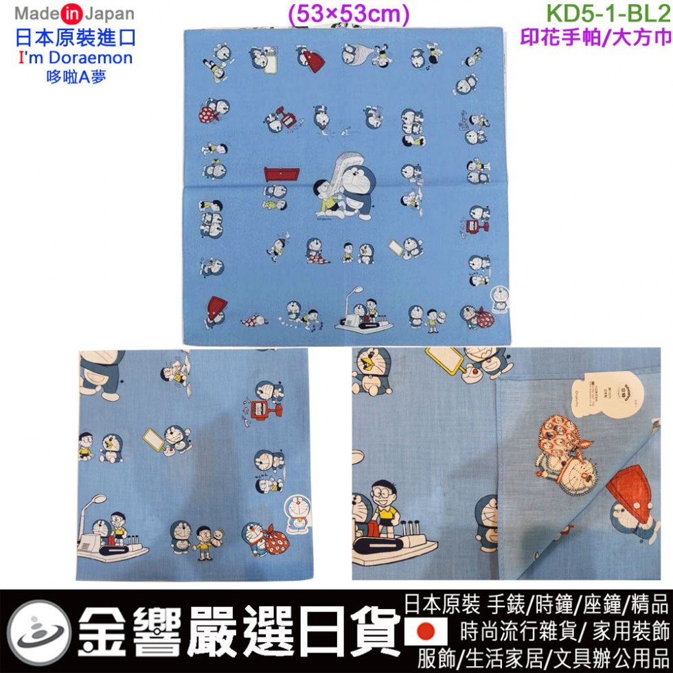 【金響日貨】現貨,KAWABE KD5-1-BL2(日本原裝):::日本製,Doraemon,哆啦A夢,純棉手帕,方巾,手帕,刷卡或3期