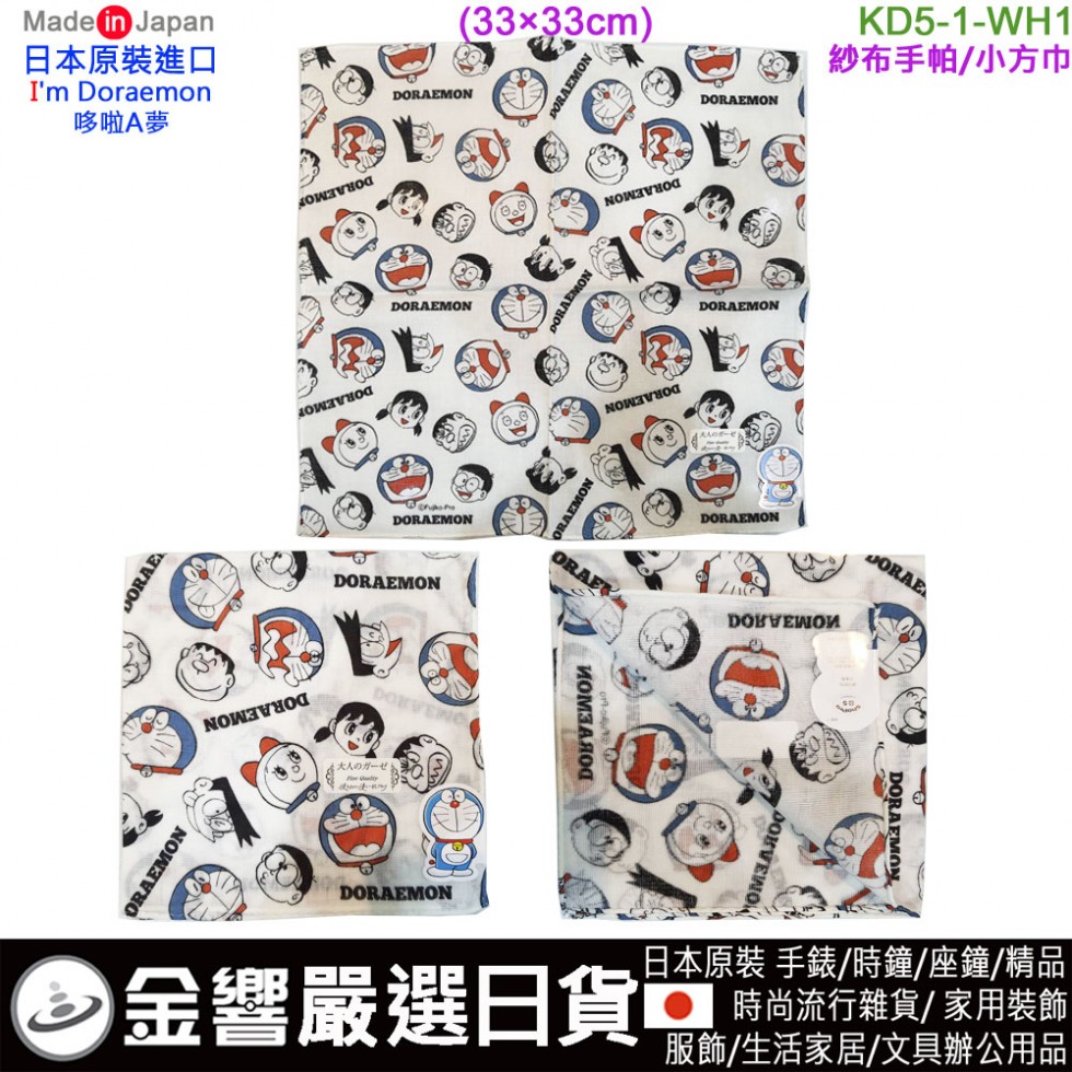 【金響日貨】現貨,KAWABE KD5-1-WH1(日本原裝):::日本製,Doraemon,哆啦A夢,雙層純棉紗布手帕,小毛巾,小方巾,小手帕,刷卡或3期
