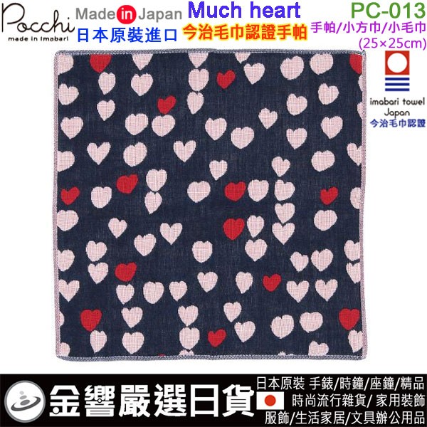【金響日貨】現貨,Pocchi PC-013 Much heart(日本原裝):::日本製,今治毛巾認證,WAFUKA,和布華,愛媛縣,紗布手帕,小方巾,刷卡或3期,4543479156343