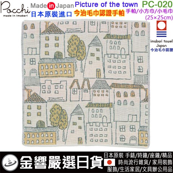 【金響日貨】現貨,Pocchi PC-020 Picture of the town(日本原裝):日本製,今治毛巾認證,WAFUKA,和布華,紗布手帕,小方巾,刷卡,4543479164881
