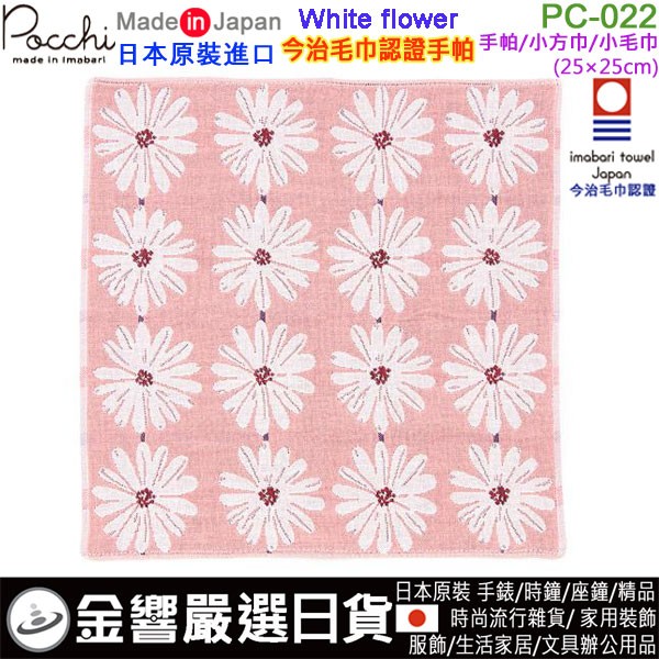 【金響日貨】現貨,Pocchi PC-022 White flower(日本原裝):::日本製,今治毛巾認證,WAFUKA,和布華,愛媛縣,紗布手帕,小方巾,刷卡或3期,4543479168087