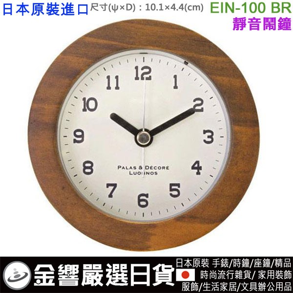 【金響日貨】EINA EIN-100-BR棕色(日本國內款):::指針型鬧鐘,北歐風格,極簡風,木質外殼,靜音,嗶嗶聲鬧鈴,刷卡或3期,EIN100