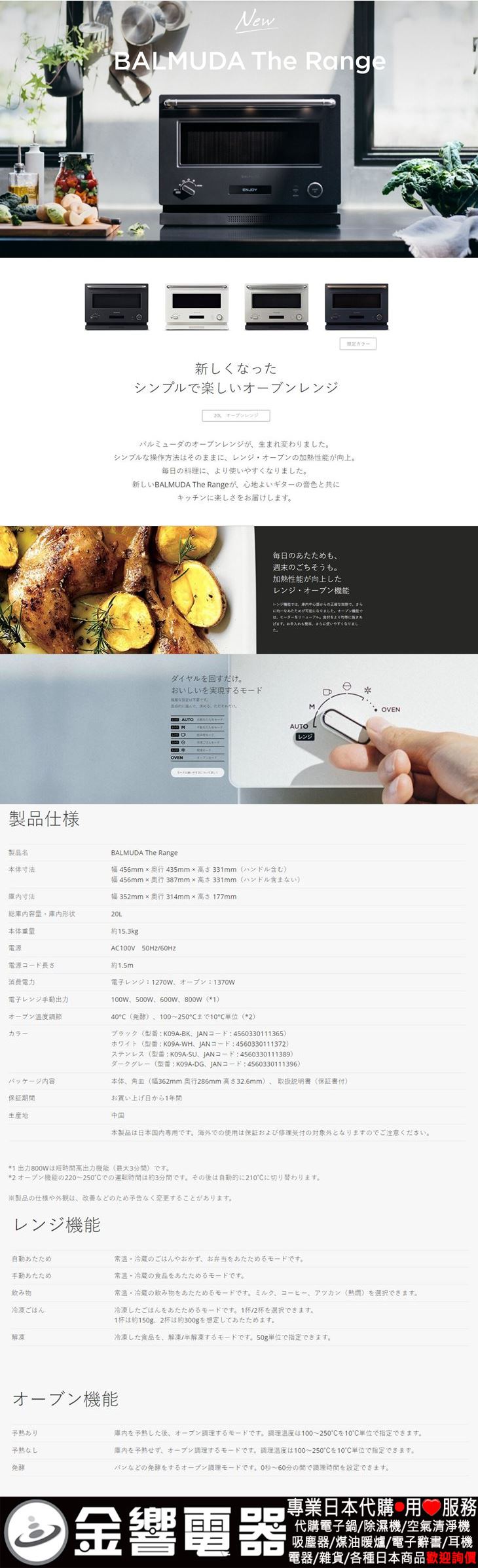 【金響代購】空運,BALMUDA K09A-BK黑色(日本國內款):::BALMUDA The Range,微波烤箱,取代,K04A-BK