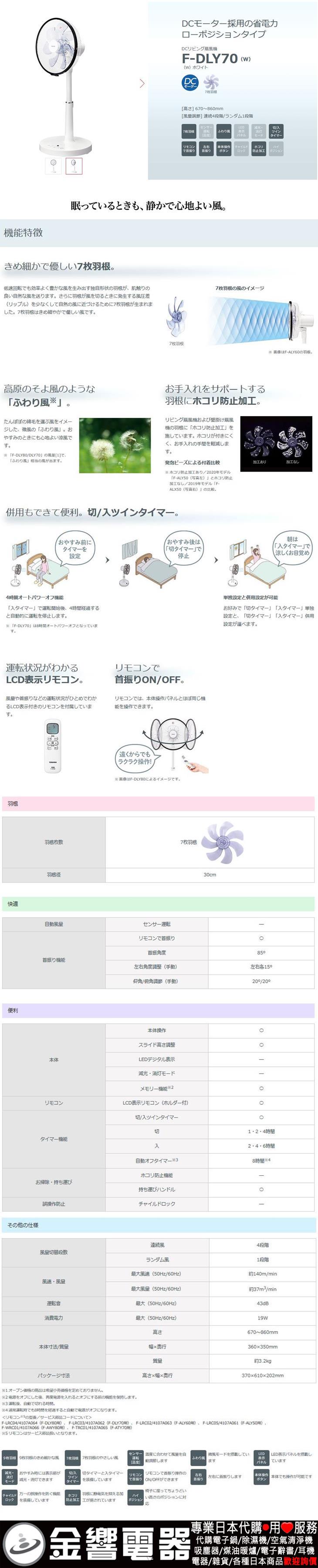 【金響代購空運】TOSHIBA F-DLY70-W(日本國內款):::2020年,東芝,DC變頻馬達,電風扇,立扇,附遙控器,刷卡或3期零利率,F-DLY70(W)