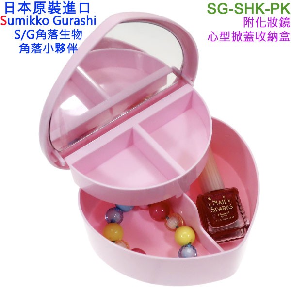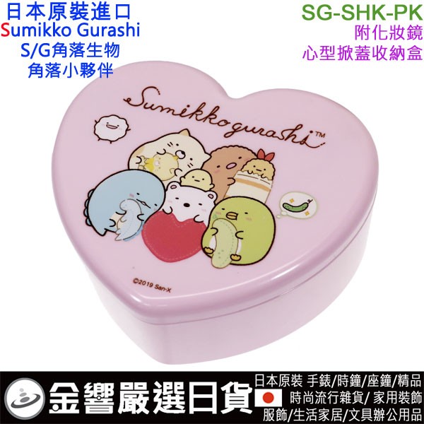 【金響日貨】kcompany SG-SHK-PK(日本原裝):::SUMIKKO GURASHI,角落生物,S/G,角落小夥伴,心型掀蓋收納盒附鏡子,飾品盒,珠寶盒,小物盒,刷卡或3期