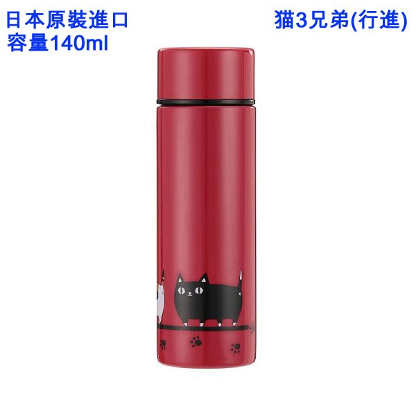 缺貨,CERAMIC AI 98155 行進,紅色(日本原裝):::貓三兄弟,保溫瓶,保冷瓶,140ml,刷卡或3期,4543945981554line