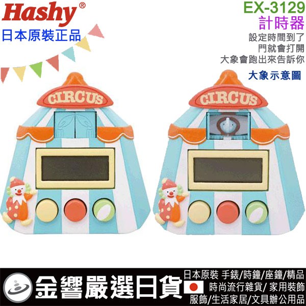 【金響日貨】Hashy EX-3129藍色(日本原裝):::馬戲團,CIRCUS,計時器,2種聲音切換.大象跳出來,廚房計時器,99分99秒,刷卡或3期,EX3129