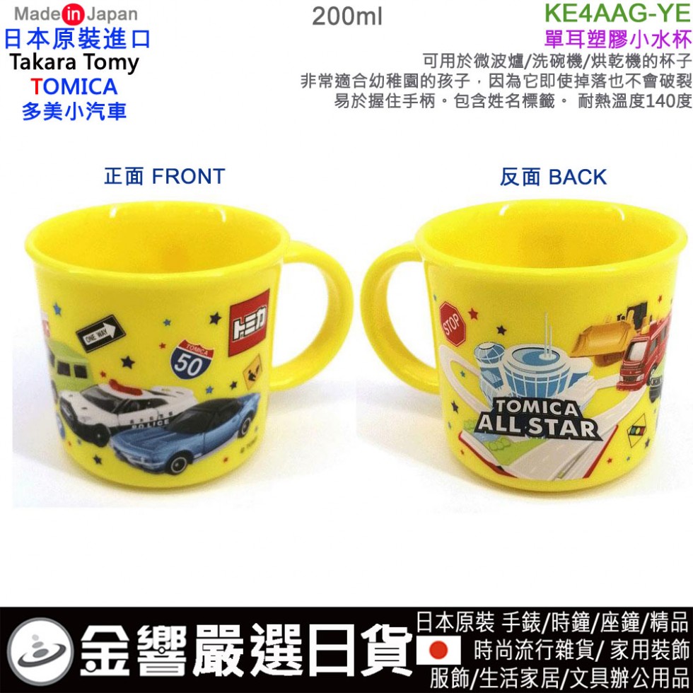 【金響日貨】現貨,Skater KE4AAG-YE(日本原裝):::日本製,TOMICA,多美小汽車,單耳塑膠小水杯,茶杯,漱口杯,200ml,刷卡或3期,4973307517563