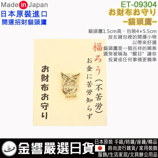 【金響日貨】現貨,ETOILE ET-09304(日本原裝):::日本製,貓頭鷹,ふくろう,開運小物,財布守,錢包御守,錢包幸運符,刷卡或3期