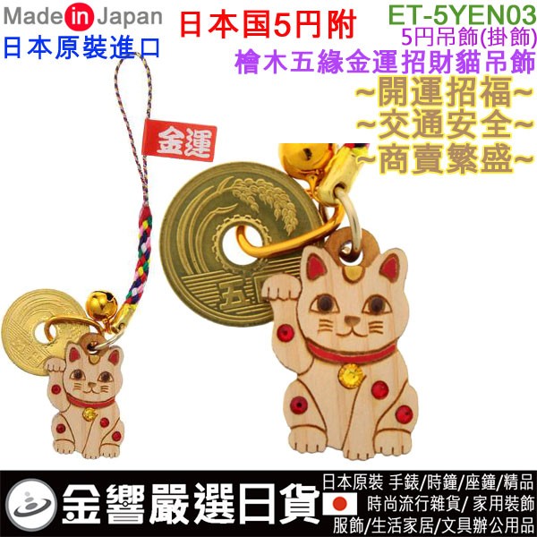 dot 金響電器‧金響日貨:::歡迎蒞臨金響門市參觀選購 EST.1995 » 日本代購 » 檯燈、居家、五金、玩具、雜貨 » 開運商品(日本原裝) » 【金響日貨】現貨,ETOILE ET-5YEN03(日本原裝):::日本製,5円,五緣檜木金運招財猫,開運招福,交通安全,掛飾,吊飾,刷卡或3期