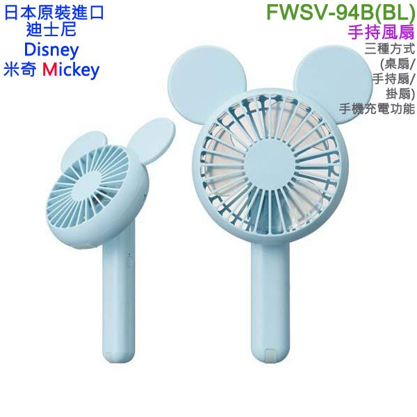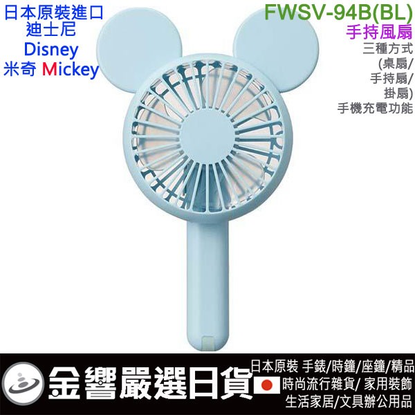 【金響日貨】DOSHISHA FWSV-94B(BL)(日本原裝):::DISNEY,迪士尼,Mickey,米奇,3WAY風扇,手機充電,刷卡或3期,4550283396346