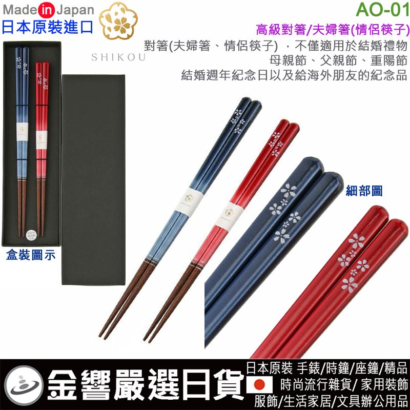 【金響日貨】現貨,aoba AO-01常花(日本原裝):::日本製,筷子組套,對筷,夫婦箸,情侶筷子,食洗箸,刷卡或3期line