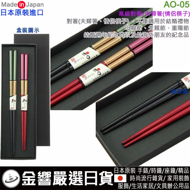 【金響日貨】現貨,aoba AO-05 黄金の帯(日本原裝):::日本製,筷子組套,對筷,夫婦箸,情侶筷子,食洗箸