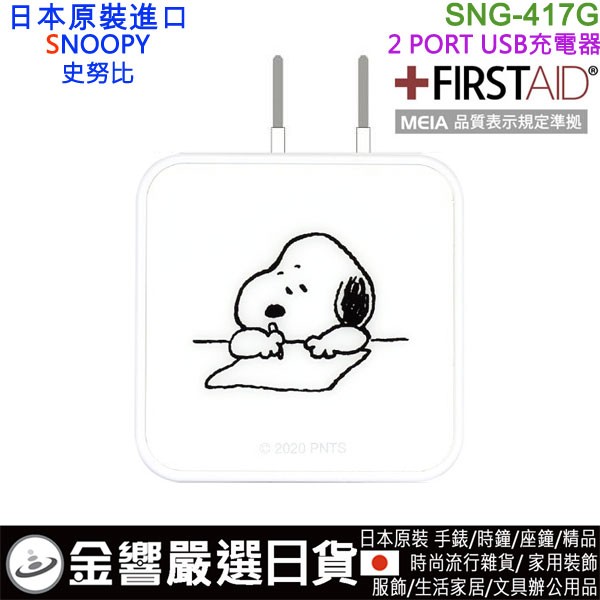 【金響日貨】gourmandise SNG-417G(日本原裝):::PEANUTS,SNOOPY,史努比,2 PORT,USB急速充電器,世界電壓,刷卡或3期,4550213026978