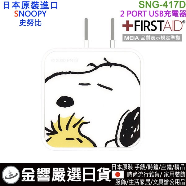 【金響日貨】gourmandise SNG-417D(日本原裝):::PEANUTS,SNOOPY,史努比,2 PORT,USB急速充電器,世界電壓,刷卡或3期,4550213026947