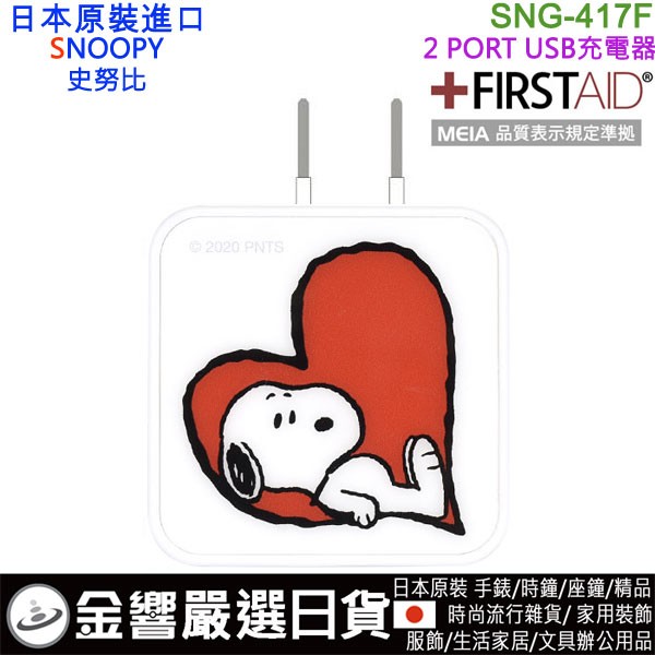 【金響日貨】gourmandise SNG-417F(日本原裝):::PEANUTS,SNOOPY,史努比,2 PORT,USB急速充電器,世界電壓,刷卡或3期,4550213026961