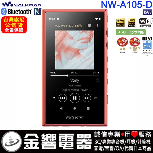 全新NW-A100系列Walkman採用Android 操作系統,NW-A105內建16GB支援microSDXC擴充記憶體,可以選購入耳式耳機 (IER-NW510N)支援降噪及環境音模式。支援 Hi-Res 高解析音質,配備 S-Master HX 放大器電路提供最佳音質,DSEE HX處理器可將壓縮音檔提升音質,黑膠唱片處理器可用於提供復古音質。Android™ 應用程式透過 Wi-Fi,支援音樂串流或是直接下載音樂,高品質零組件,傳遞高音質,原生DSD傳遞柔軟且完暖的聲音特質, 支援LPCM 384kbps/32 bit播放,高功率輸出使耳機傳遞最佳化音質,DSEE HX ™ 還原壓縮音源達到CD品質,LDAC™使無線藍牙可傳遞高解析音質,復古經典錄音帶播放螢幕保護程式,內建16G (A105) / 32G (A106) & 支援microSD擴充記憶體,長效電池續航力長達26小時,USB Type-C接頭。
