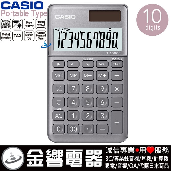CASIO SL-1000SC-GY(公司貨,保固2年):::香檳計算機,攜帶型,商用計算機,10位數,百分比計算,刷卡或3期,SL1000SC