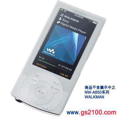 專為NW-A845/A846/A847/NW-A855/A856/A857系列量身打造的矽膠果凍套,能有效保護隨身聽避免主機機身受到碰撞及刮傷
