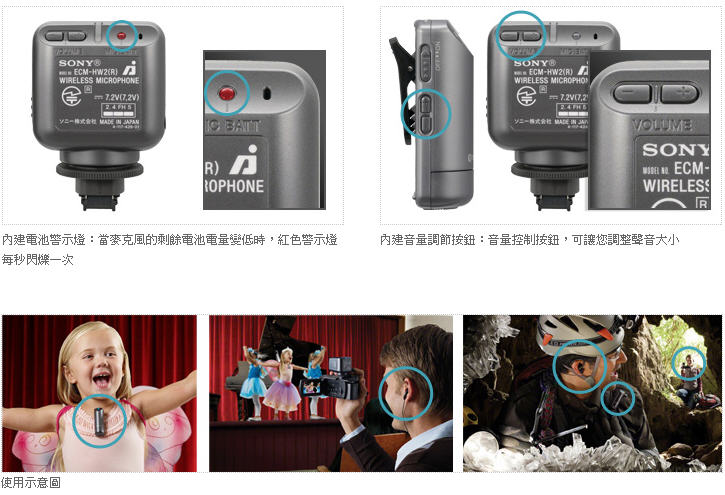 ●マイクロホンの電池切れを確認できるローバッテリーLED付き