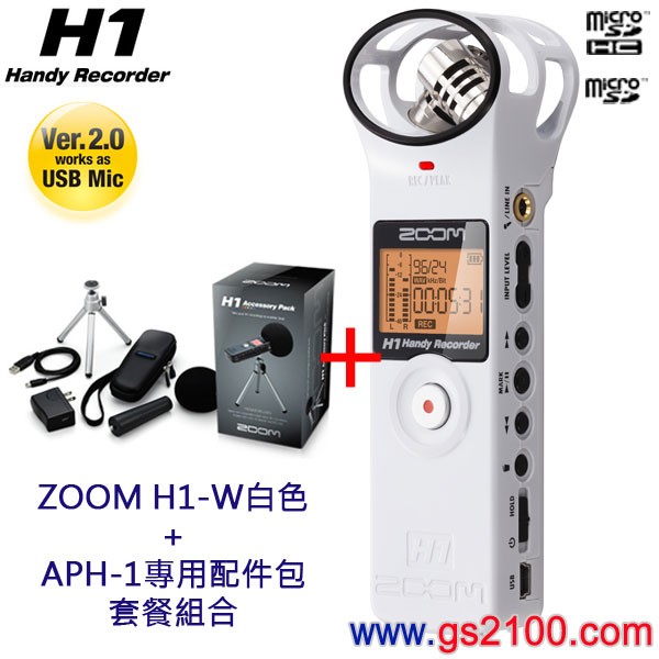 已完售,ZOOM H1W+APH-1套餐組合:::含Handy Recorder ZOOM H1W白色+APH-1專用配件包,刷卡不加價或3期零利率