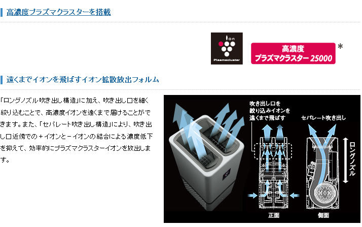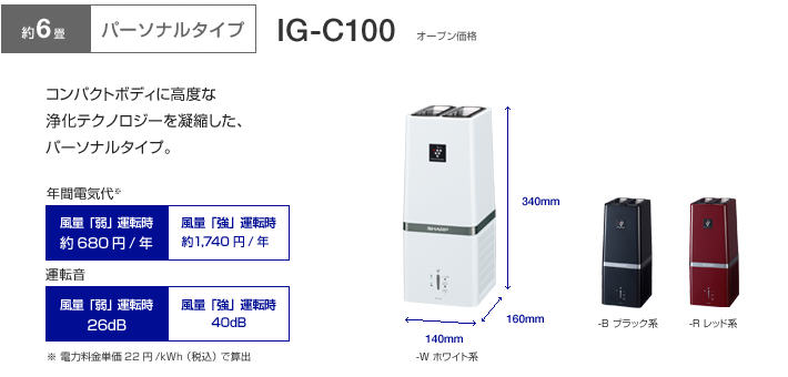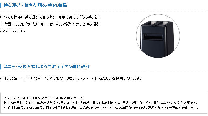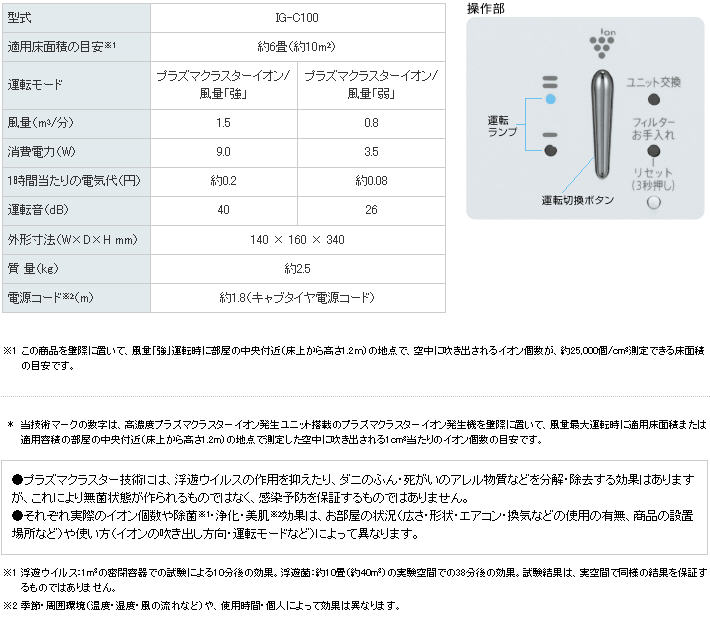 SHARP除菌離子產生器「IG-C100」2011年最新機種,是替代「IG-B100」舊機種。「長噴嘴吹出構造」之外又加上,很小縮小的吹出口,能送交高濃度離子到遠方。