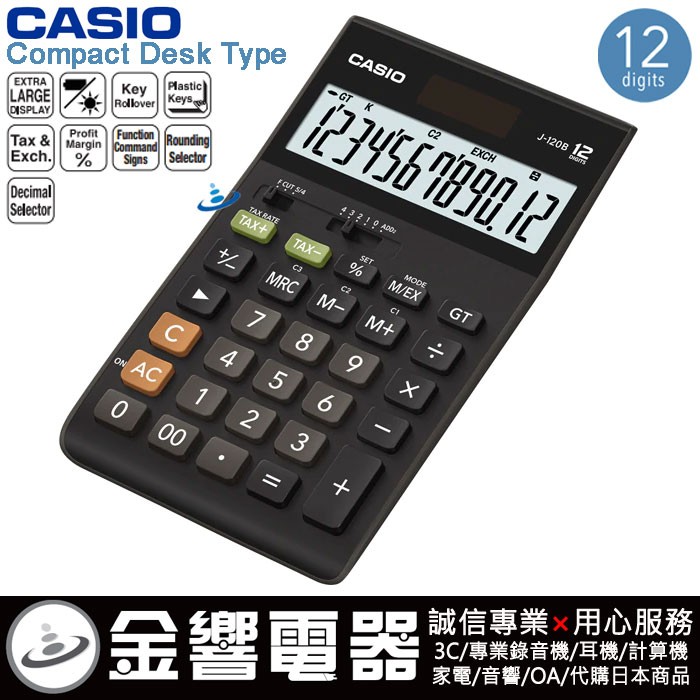 已完售,CASIO J-120B(公司貨,保固2年):::中型桌上型商用計算機,12位數,J120B