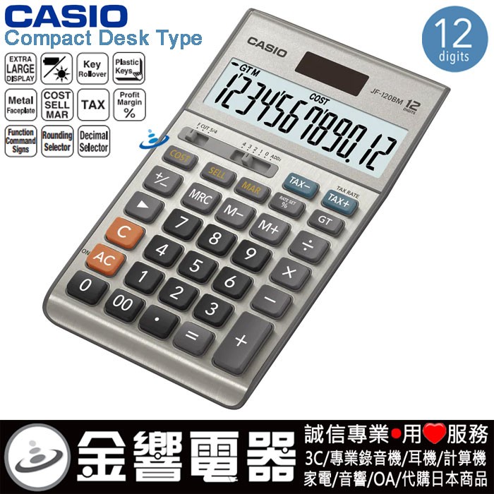 已完售,CASIO JF-120BM(公司貨,保固2年):::標準桌上型,商用計算機,12位數,刷卡不加價或3期零利率,JF120BM