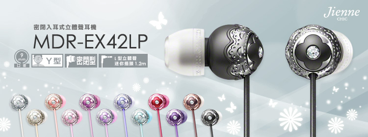 ●金響為台灣索尼正式授權經銷商,請安心購買SONY公司貨商品;金響提供您優惠的價格與網購紅利積點回饋。 Jienne CHIC 系列,採用 Swarovski 水晶 12 款花卉色彩,造型成熟神祕。9mm 驅動單體,呈現高解析度高音、中音以及超強重低音。隨附 SS 尺寸的耳塞,適合較小耳型使用。 自2009/7/1起,本耳機提供自購買日期起一年之免費保證服務(需憑「有效之保固卡」方可享有保固服務)。 ● ●採用 SWAROVSKI ZIRCONIA ( 施華洛士奇水晶切割造型 ) 鑄造點綴的花心設計,呈現花朵般美麗的光澤 ●侈奢繽紛的耳機線 ●彩色對應的舒適耳塞 ●12種甜蜜而浪漫的花卉圖案,成熟神祕多彩流線型設計 ● ●有角度的耳塞結構使佩戴穩定而舒適 ●混合矽膠耳塞貼合更牢固,長時間聆聽也不會感到不適 ●9mm 驅動單體,呈現高解析度高音、中音以及超強重低音 ● ●蝴蝶造型設計的 Y 型導線滑動器,可防止耳機線纏繞糾結 ●鍍金 L 型立體聲迷你插頭 ●隨附 3 種尺寸(SS / S / M)耳塞,可以穩定舒適地貼合在耳內 [商/品/規/格] ●型號:MDR-EX42LP ●型式:封閉式、動態 ●喇叭:9mm、圓頂型 ●最大承受功率:100 mW ●阻抗:16 Ω(1kHz) ●音壓感度:100dB/mW ●頻率響應:6~23,000Hz ●引線:1.2m、絞合線 Y 型 ●入力插頭:長線(鍍金L型立體聲插頭) ●重量:3g(不含線) ●附件:砲彈型交換用耳塞(SS/S/M)各2個、說明書、台灣索尼公司貨保證書。