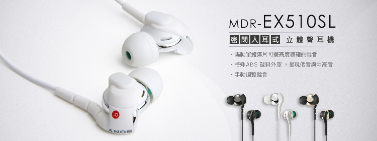 已完售,SONY MDR-EX510SL/W(公司貨):::密閉型耳塞式耳機接收器,