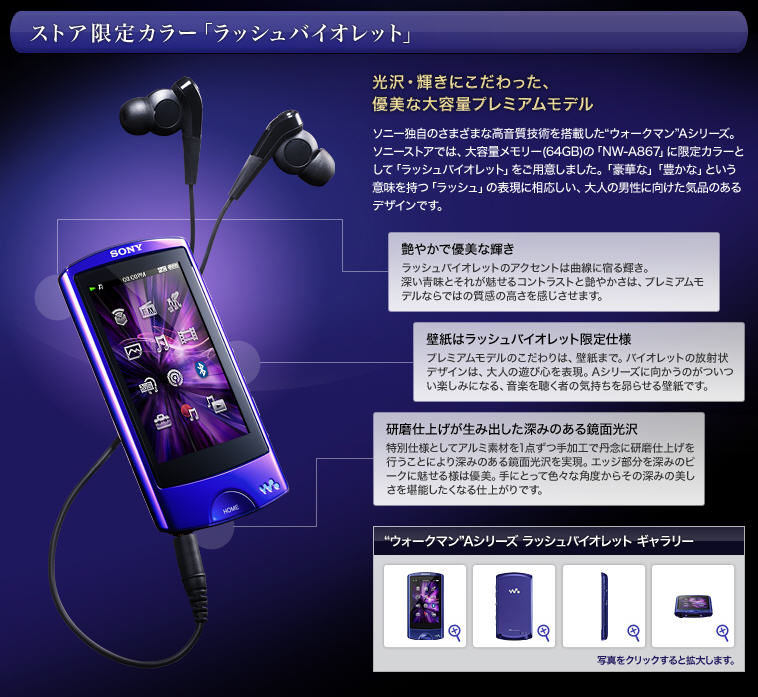 已完售,SONY NW-A867/VI紫羅藍(日本sonystore限定):::Walkman A系列,觸控螢幕,錄音,降噪,FM,Podcast,內建藍牙網路隨身聽(64GB)