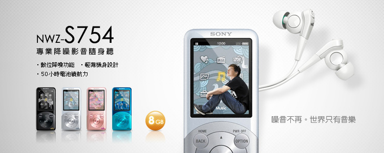 已完售,SONY NWZ-S754/L磁浮藍(公司貨):::Network Walkman S系列防噪網路隨身聽(8GB)
