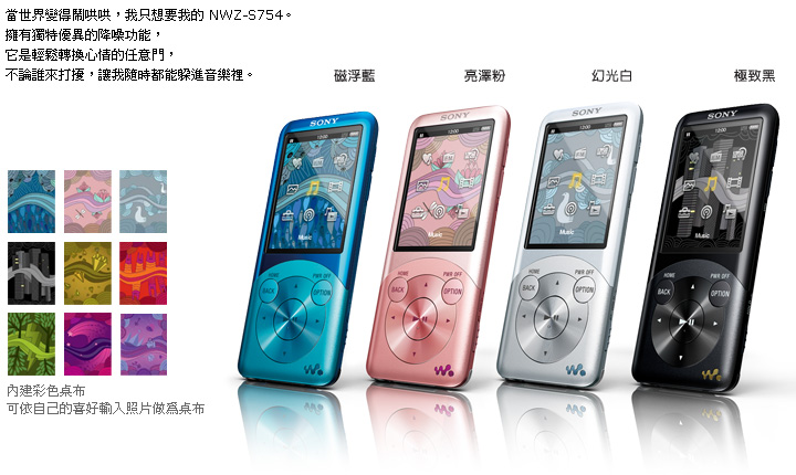 ●內建快閃記憶體 8GB 不論自己是在前往哪裡的路上,值得享受的並非只有終點站而已,還有一路上與自己對話的各種心情。專業降噪的 NWZ-S755,即便身在喧鬧的通勤途中都能擁有旅行般的自在,多餘的噪音都被隔絕在音樂世界之外,每天,都是一段新的旅程。 數位降噪功能*:減少約 90% 噪音,高音質享受 *Sony 實驗室測試所得數據 影音首選*:50 小時音樂播放, 10 小時影片播放 *MP3:128kbps/MPEG-4:384kbps SensMe™心情點播器:歌曲自動分類, 點播超輕鬆 支援電視輸出*:SD 格式電視輸出,影片分享更簡易 *須另購配件 輕薄機身:輕薄 7.2mm,質感鋁合金外型 極優畫質:2.0 吋高畫質,LCD 液晶寬螢幕 音質最佳:5 種進階,音質最佳化 *1 降噪幅度依Sony實驗室測試所得數據 *2 MP3 128kbps *3 MPEG-4 384kbps 附屬配備:原廠防噪耳機、USB 傳輸線、機上耳機轉接頭、音源輸入線、快速入門指南、台灣新力原廠保證書。 ■體積/重量 尺寸:寬42.7 × 高94.2 ×縱深7.5 mm 重量:約55g(含充電池)