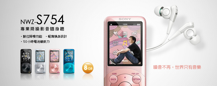 已完售,SONY NWZ-S754/PI亮澤粉(公司貨):::Network Walkman S系列防噪網路隨身聽(8GB)