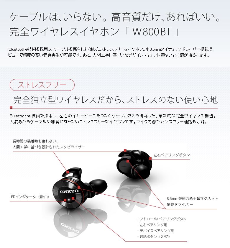 代購,ONKYO W800BT(日本國內款):::Bluetooth藍牙無線耳機,全無線耳機,刷卡不加價或3期零利率,免運費,W800-BT