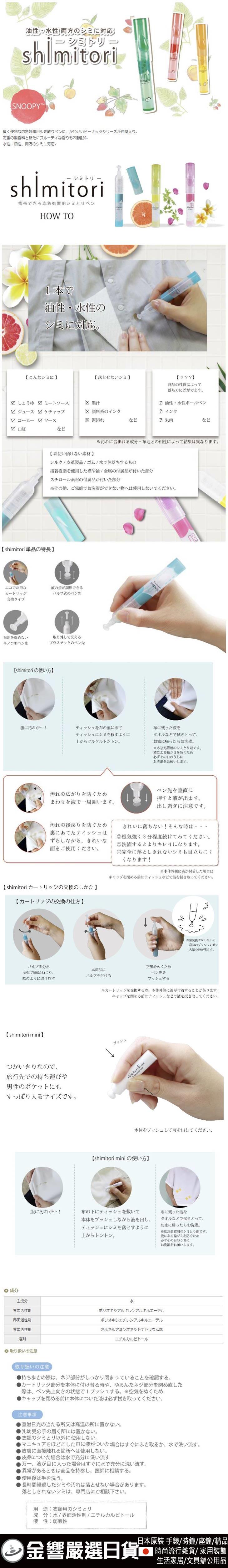 【金響日貨】shimitori SN645(日本原裝):::日本製,史努比,攜帶式瞬間去污神器,去汙筆,去漬筆,擦擦筆,去汙漬,外食族必備,刷卡或3期,4560103146457