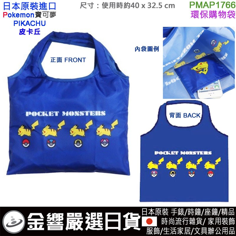 dot 金響電器‧金響日貨:::歡迎蒞臨金響門市參觀選購 EST.1995 » 日本代購 » 服飾、潮T、美妝、包包、毛巾、襪子、傘 » 手提袋/收納包/背包(日本原裝) » 【金響日貨】現貨,smallplanet PMAP1766(日本原裝):::Pokemon,寶可夢,PIKACHU,皮卡丘,折疊環保購物袋,環保袋,手提袋,側背袋,刷卡或3期,454920445807