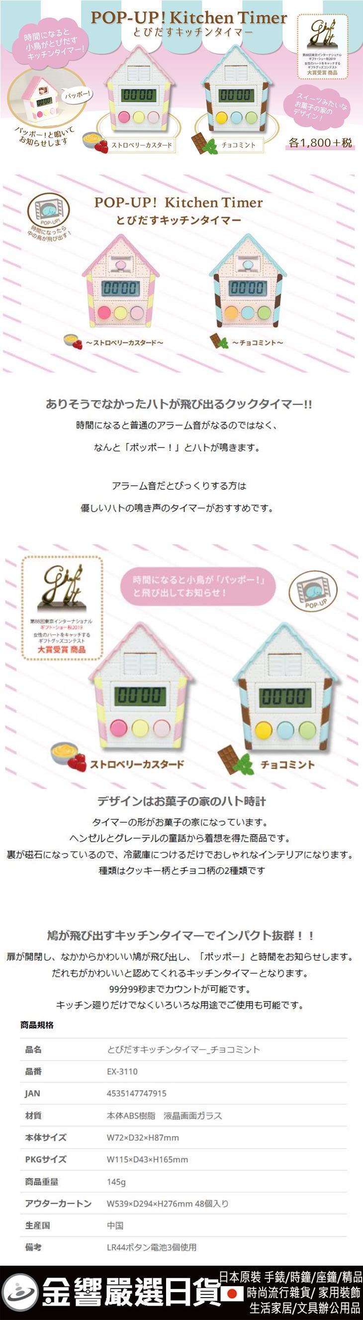 【金響日貨】Hashy EX-3110藍色(日本原裝):::2種聲音切換.鴿子跳出來,廚房計時器,99分99秒,刷卡或3期,EX3110