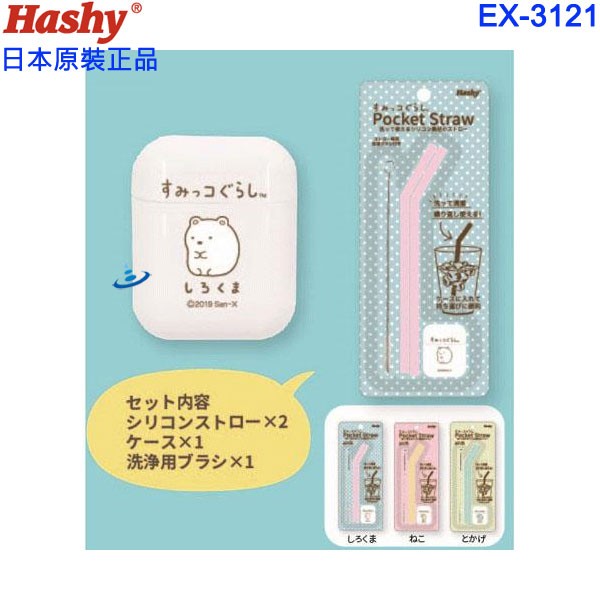 Hashy EX-3121,貓咪(日本原裝):::SUMIKKO GURASHI,角落生物,角落小夥伴,口袋吸管,吸管,矽膠吸管,環保吸管,附收納盒與清潔刷,刷卡或3期,EX3121