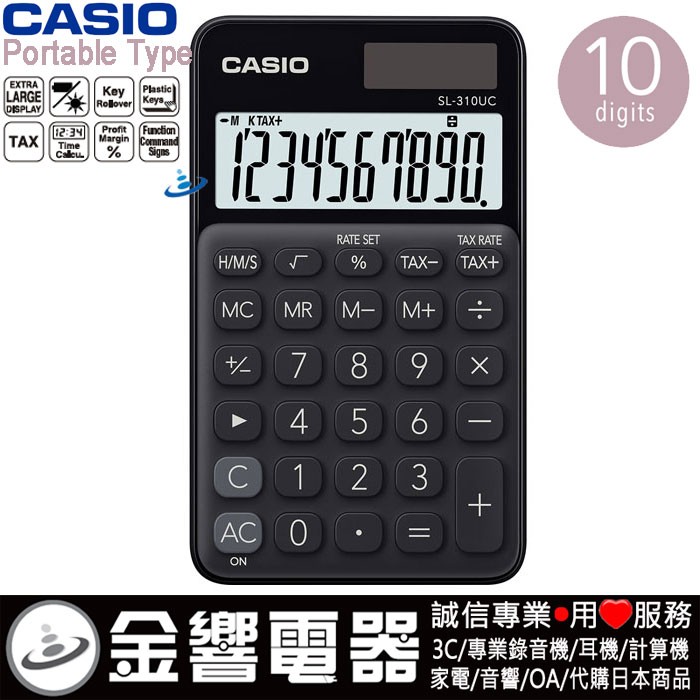 CASIO SL-310UC-BK(公司貨,保固2年):::馬卡龍計算機,攜帶型,商用計算機,10位數,利潤率計算,刷卡或3期,SL310UC
