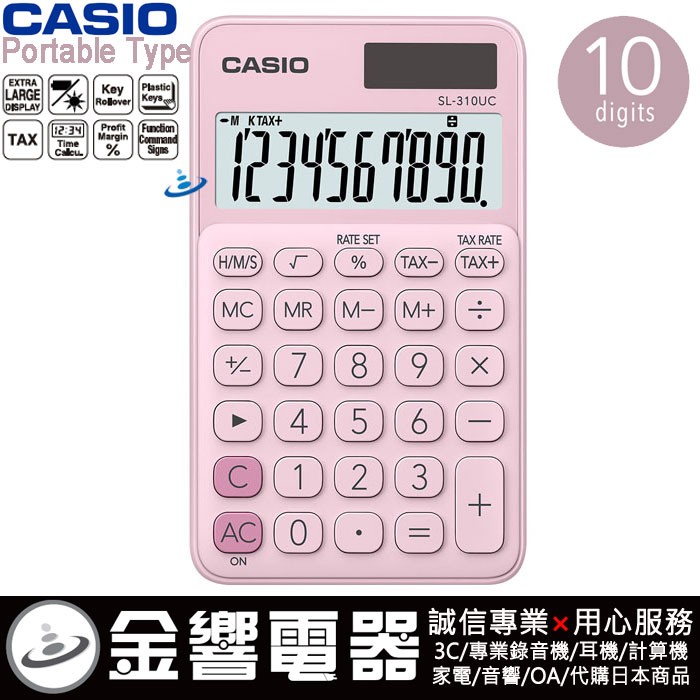 CASIO SL-310UC-PK(公司貨,保固2年):::馬卡龍計算機,攜帶型,商用計算機,10位數,利潤率計算,刷卡或3期,SL310UC