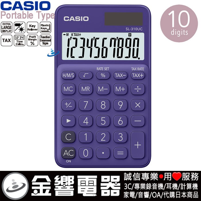 dot 金響電器‧金響日貨:::歡迎蒞臨金響門市參觀選購 EST.1995 » 學習用品 » 計算機館 » 商務計算機 » 馬卡龍計算機 » SL-310UC » CASIO SL-310UC-PL(公司貨,保固2年):::馬卡龍計算機,攜帶型,商用計算機,10位數,利潤率計算,刷卡或3期,SL310UC