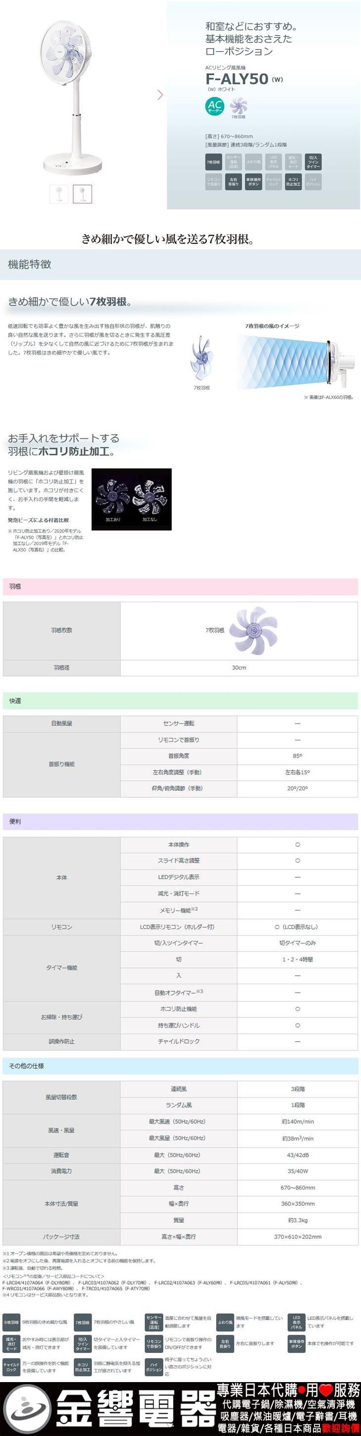 dot 金響電器‧金響日貨:::歡迎蒞臨金響門市參觀選購 EST.1995 » 日本代購 » 生活家電 » 電風扇(日本國內款) » 東芝電風扇(日本國內款) » 【金響代購空運】TOSHIBA F-ALY50-W(日本國內款):::2020年,東芝,AC交流馬達,電風扇,立扇,附遙控器,刷卡或3期零利率,F-ALY50(W)